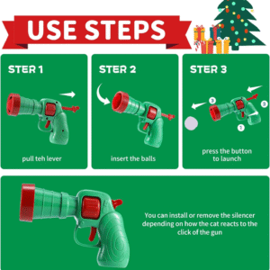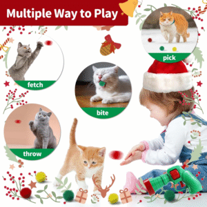 - 【X-mas Happy Cat Box】Cat box designed with Christmas theme. It contains 1 red or green colored guns and 80 brightly colored pompom balls. The balls are soft, colorful, and cats love to play with them, chasing them around. You can also use them to create various designs such as collars or Christmas tree ornaments. you can interact with your cats or even your family members and capture the moments through photos or videos.