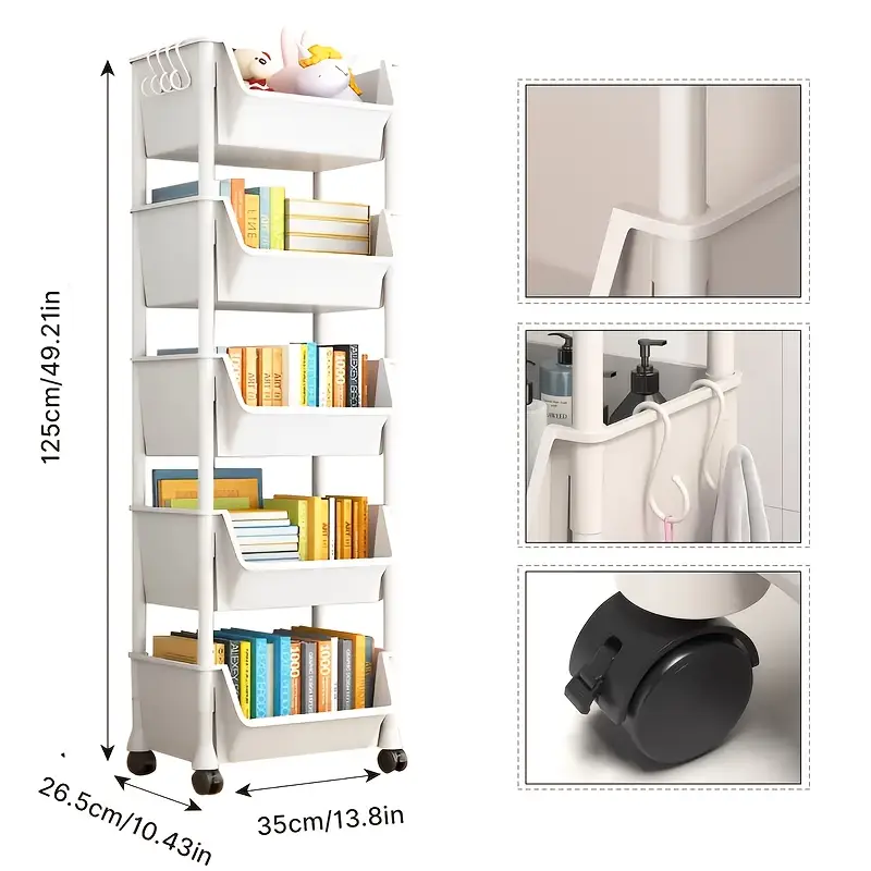 🗄️Today’s special price $4.99🗄️Mobile storage rack with wheels, suitable for living room, bedroom dormitory book storage rack, bathroom storage, garage storage.-Xkdy™
