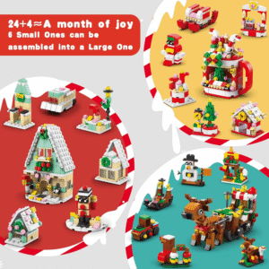 Advent Calendar 2023 – Toy Building Sets for Christmas Holiday Countdown Building Block Sets for kids Toy Gift Idea to Adventure with Daily Collectible Surprises(Christmas Sleigh)
