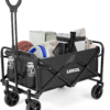 Collapsible Folding Outdoor Utility Wagon,Beach Wagon Cart with All Terrain Wheels & Drink Holders,Portable Sports Wagon for Camping, Shopping, Garden and Beach